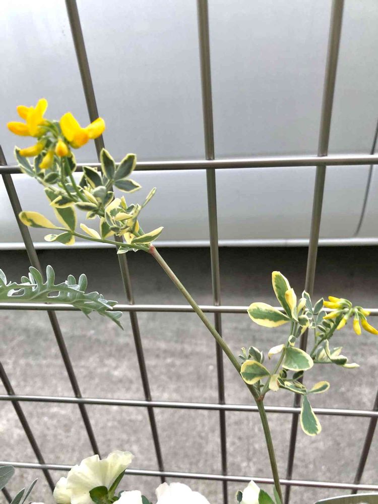 昨日の写真 寄せ植えの中のコロニラ バレンティナ バリエガータが咲きました💕葉っぱだけでも可愛いけど黄色のお花もかわいい😍