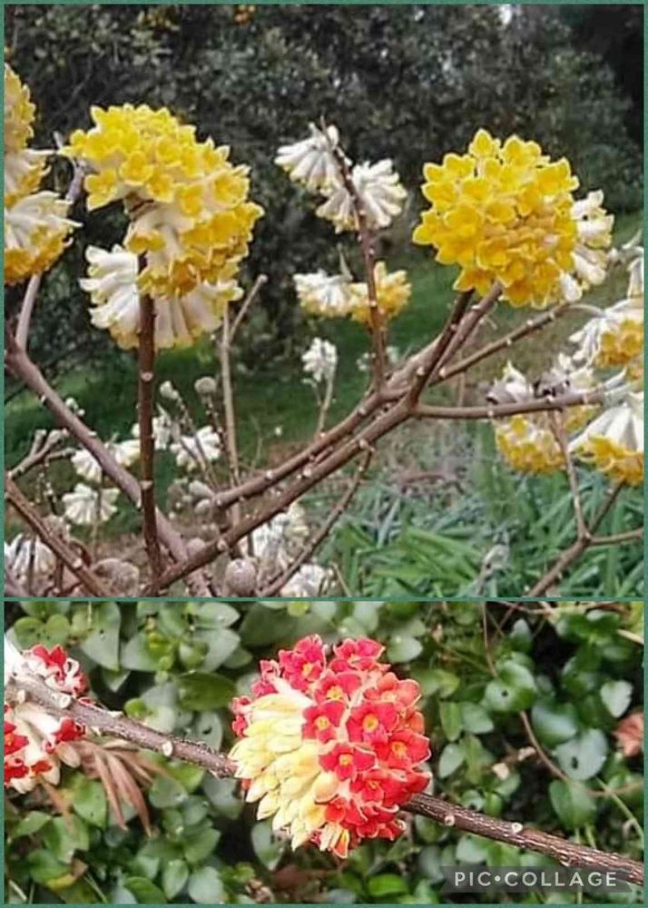 昨日訪れた友人の農園に咲いていたミツマタの花💛💗