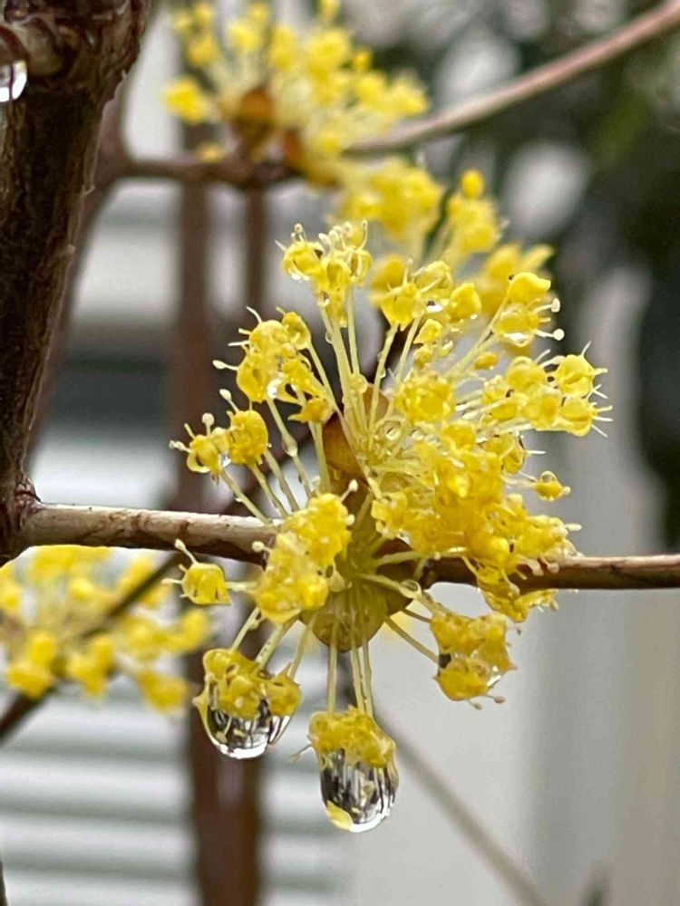お出かけ先,雨に咲くサンシュユ,栂地区ウオーキングコースの投稿画像