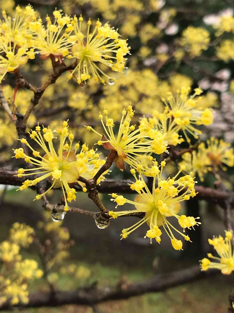 雨上がりに見てきました😅満開のサンシュユが綺麗でした。