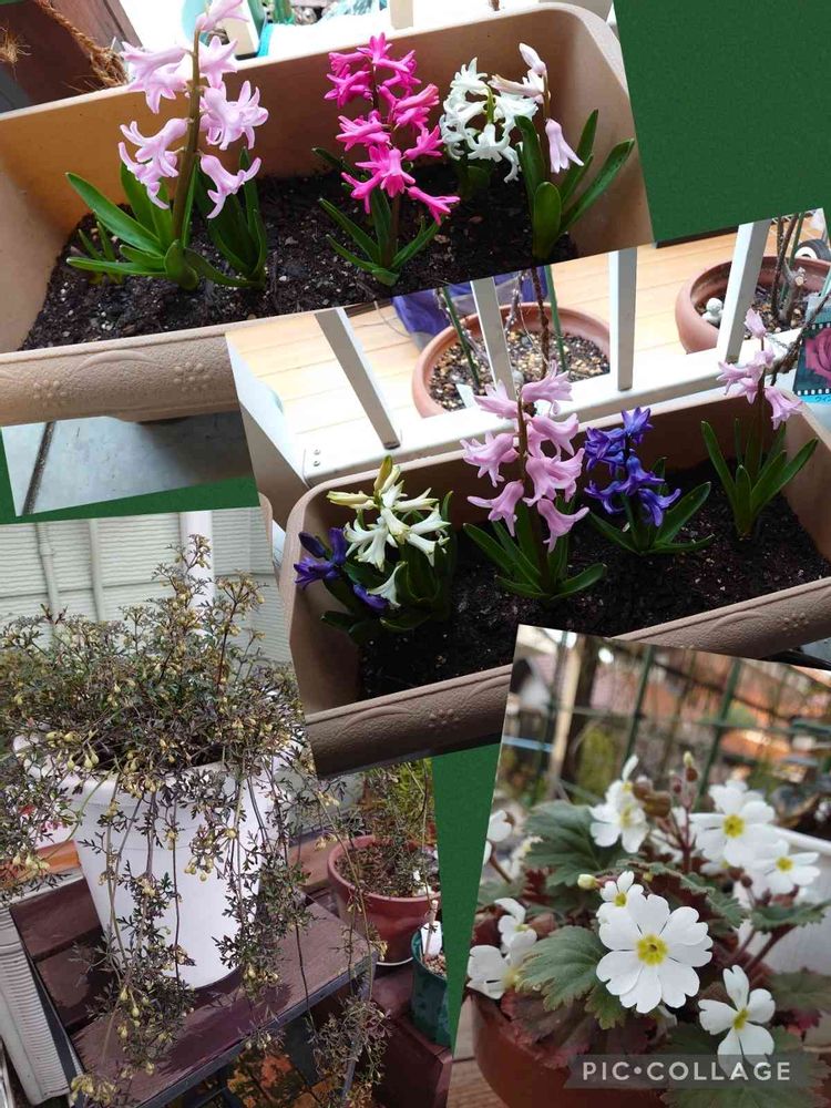 投稿写真は、3年目のヒヤシンス2枚、5年目のクレマチス・ペトリエイ1枚、白花はプリムラ・シネンシス(和名カンザクラ)です(一歩さんが教えてくれました)。ヒヤシンスはとてもいい匂いがします。