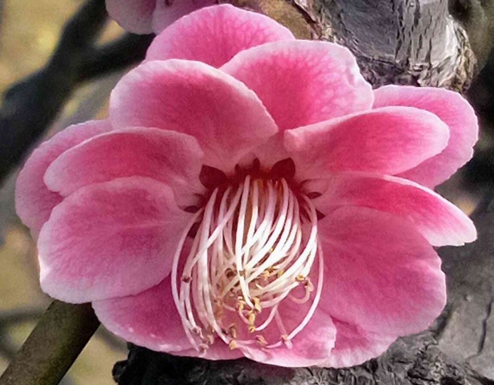 近くの公園に咲いている梅の木の赤い花