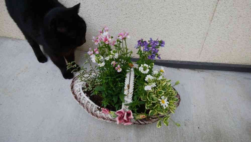 妻が同じような白のバスケットを使って寄せ植えして欲しいというのですが、せっかくのかごが傷むので、悩んでいるところです。いまは、花がら摘みかごとして利用しているのですが。