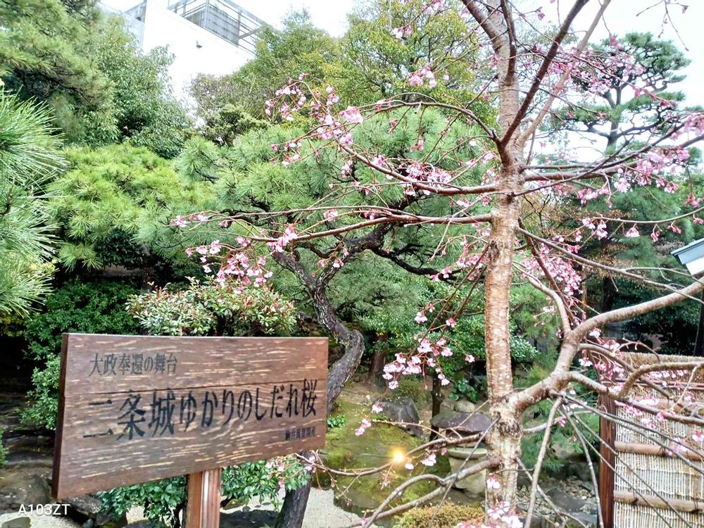 出勤途中に、大政奉還の二条城ゆかりの桜🌸が咲き始めていました。