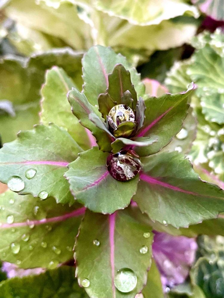 葉牡丹って、まん丸きれいな水滴が乗っかってるね💧