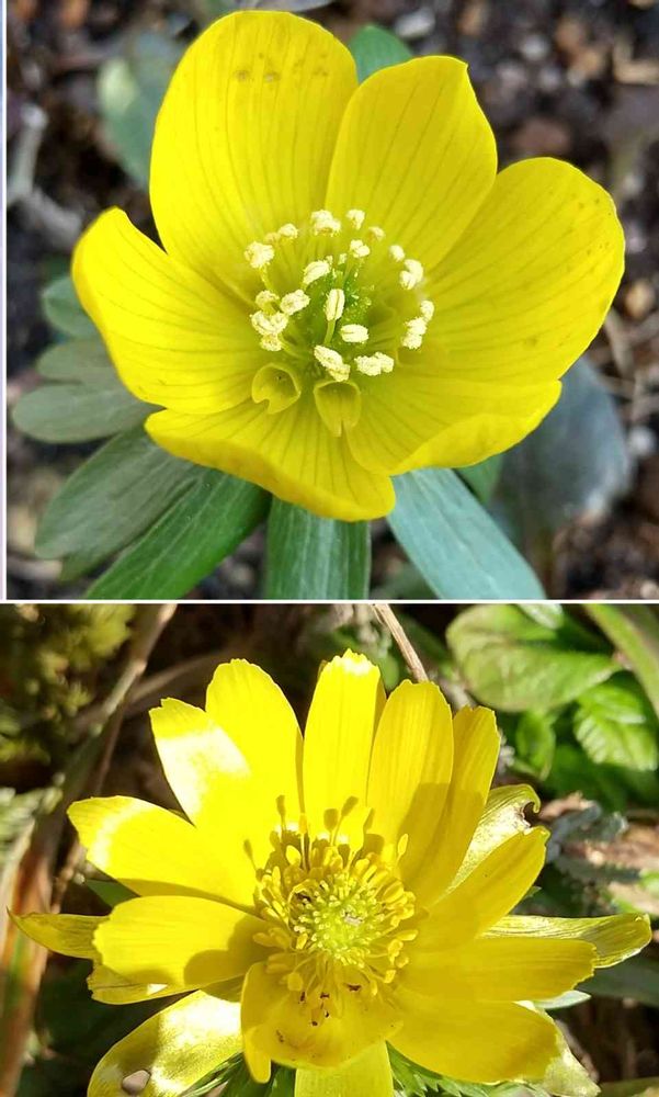 ↑節分草 ↓福寿草