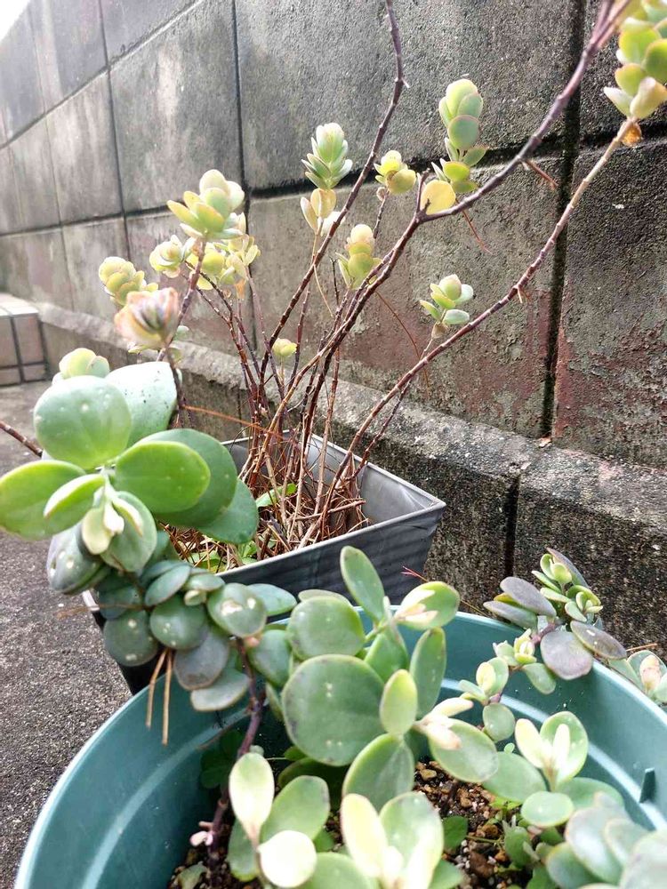 手前と奥は同じもの。挿し木した手前の方がブリッと成長中