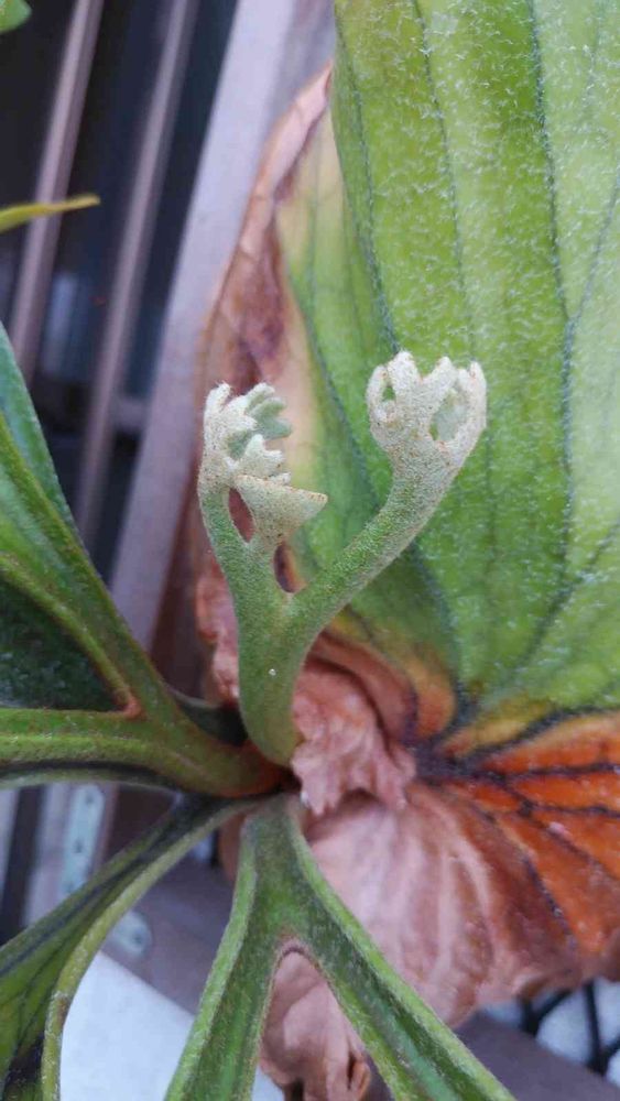 我が家のキャッチャークードのクード君に新たな胞子葉が出て来たぞ😆でも良く見たら真ん中にスプーンの様な物があるんだけど😲これってリドレイの胞子スプーンみたいな物なんですかね?クード君から初めてなのでワクワクしてます(´・ω・`)🎵