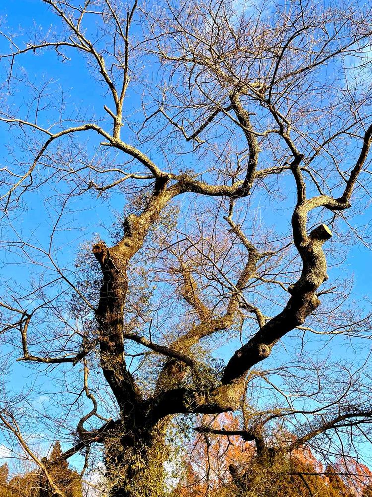 菩提寺の桜の古木。枝先がピンクに染まってきてる。