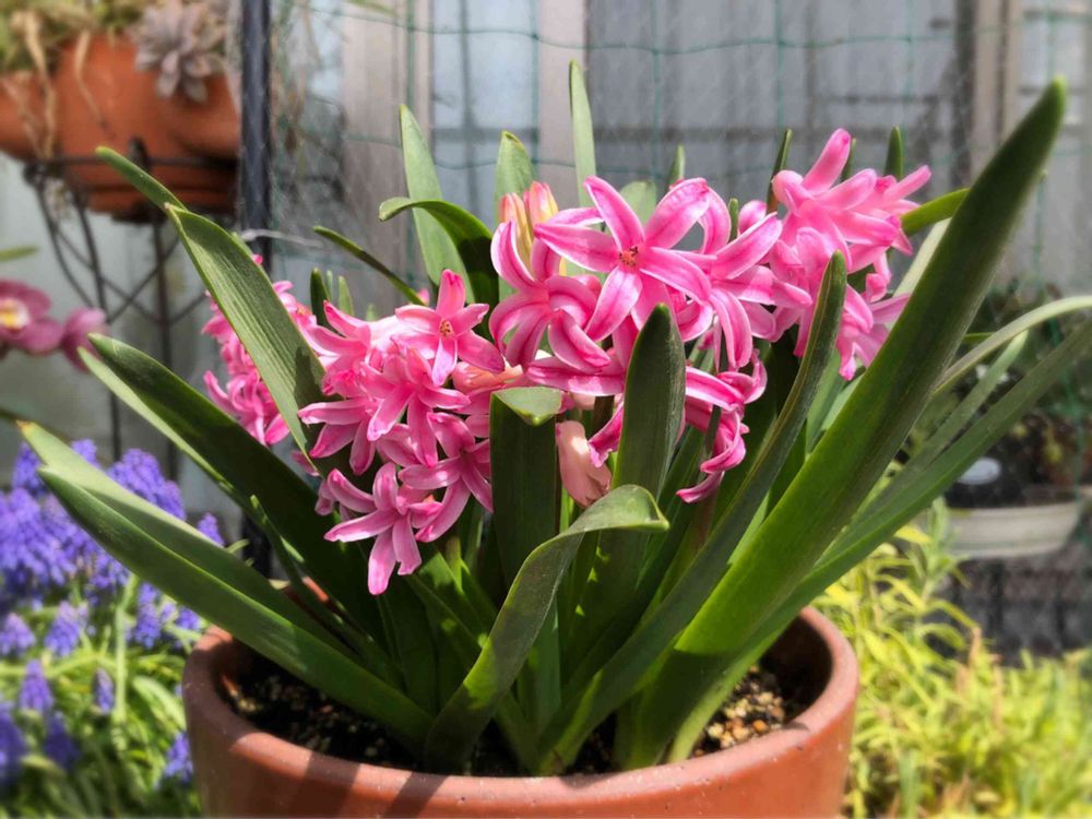 今年のヒアシンスは、ボリュームアップして花色もキレイ❣️ 昨年GSで教えて頂いた方法で、花後の肥料を多めにしたからかしら。ありがとう!