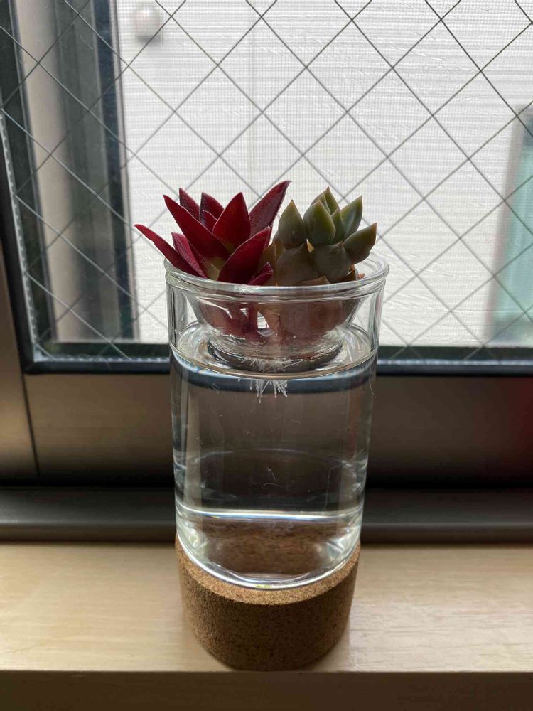 多肉植物はまだまだ初心者で、水をやりすぎたりやらなすぎたりで枯らすこともありましたが、水栽培の子凄く元気😳