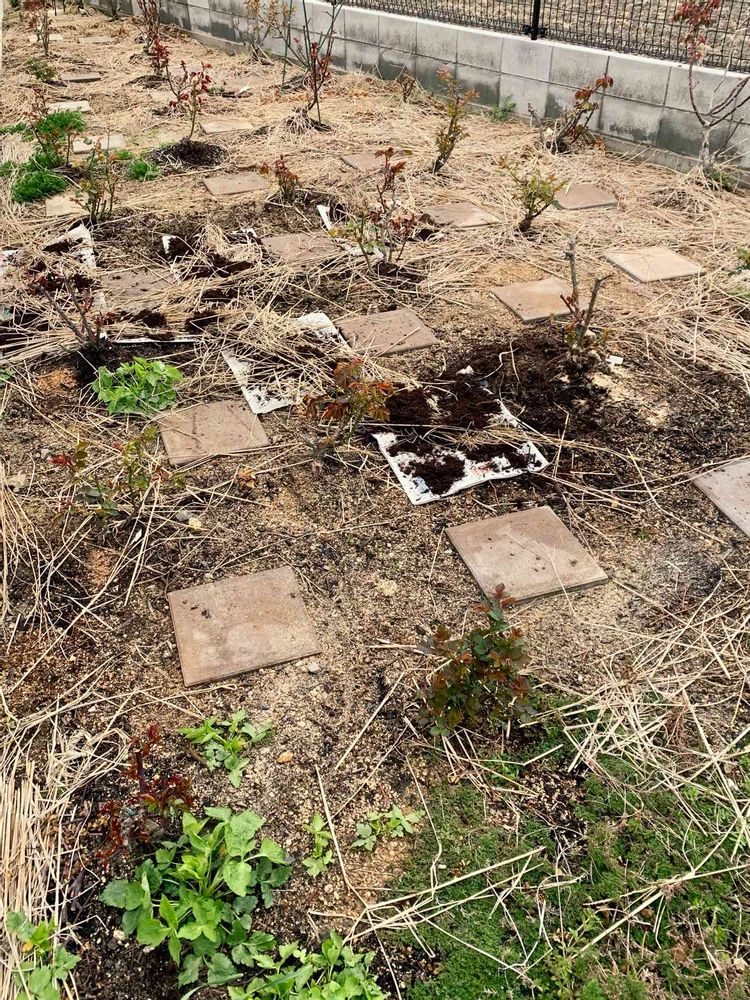 北側庭の一部に新聞紙マルチやってみました。これはお試しレベルです😅