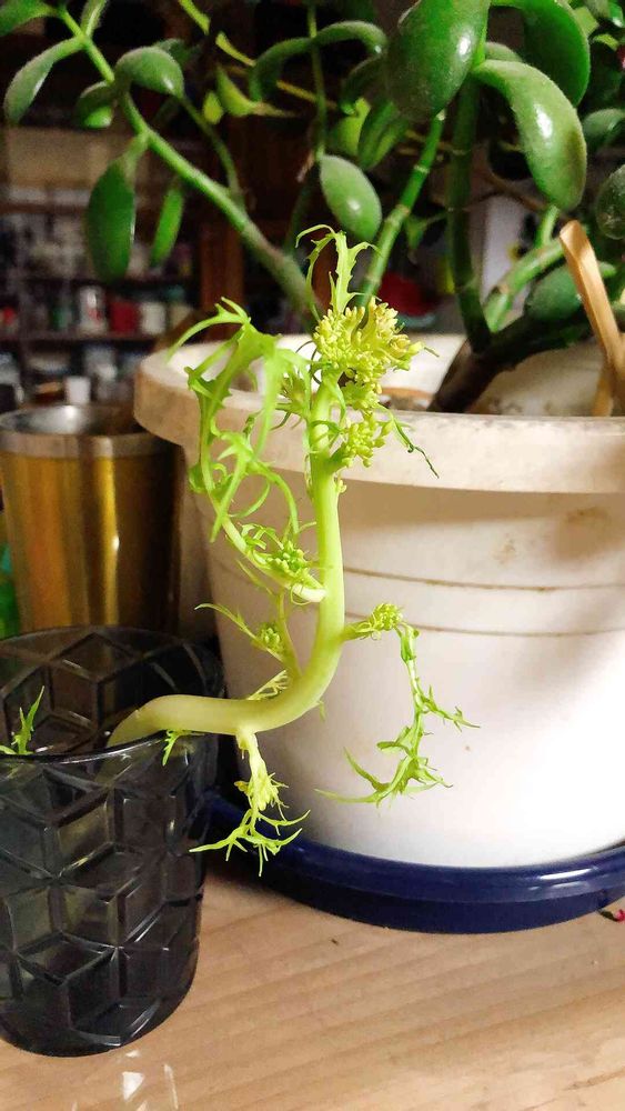 サラダに水菜を切っていたら、ヘニョヘニョな花芽が😢
