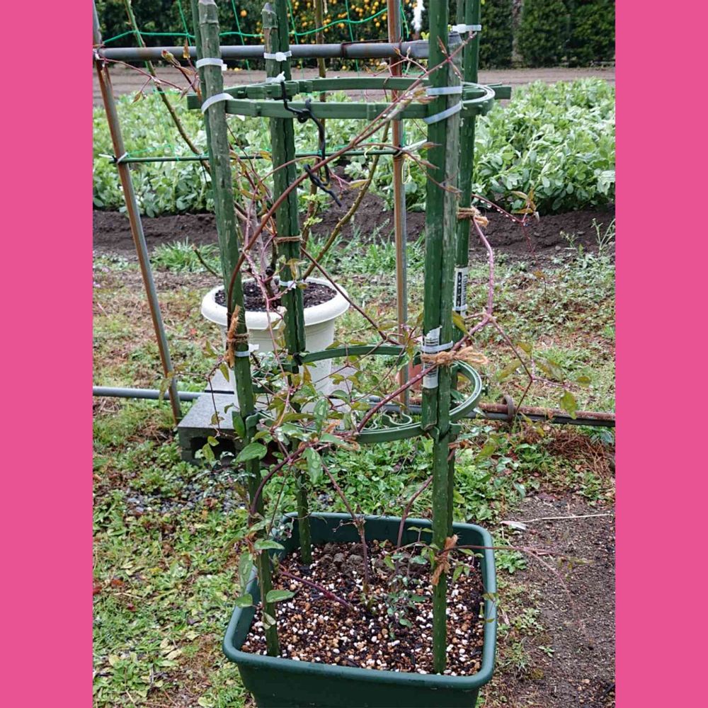🌺クレマチス2年目のプリンセスダイアナ新芽が大部伸びて来ました、今年はどれ位伸びるのかな?2m位かな。