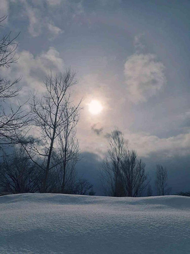 2022.3.20北大構内にて。うっすらとハロ(日暈)が写っています。昨年の今日が、札幌積雪ゼロとなった日とのこと。今年はまだこんなに雪が残っています。でも、あとは春を待つばかり🌸ですよね(*´ェ`*)