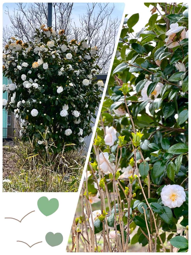 もうそろそろ終わりそうな椿、空き地で密かに白い大きな花を咲かせていました💚💚💚