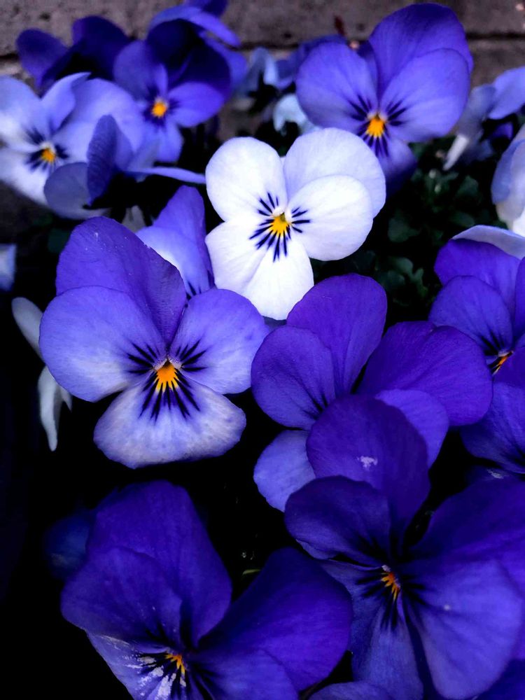 このビオラ、青紫色の花の中に一つ白い花、なんかいいですね(。•̀ᴗ-)✧
