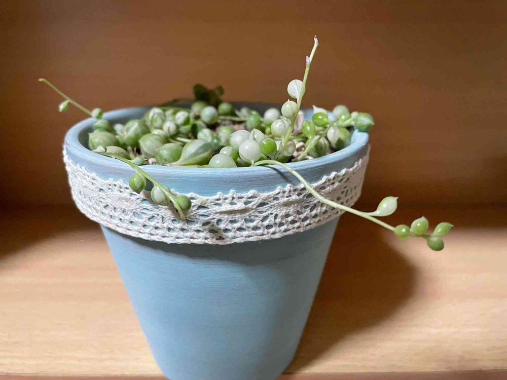 花友さんにいただいた寄せ植えに入っていた斑入りグリーンネックレス💚