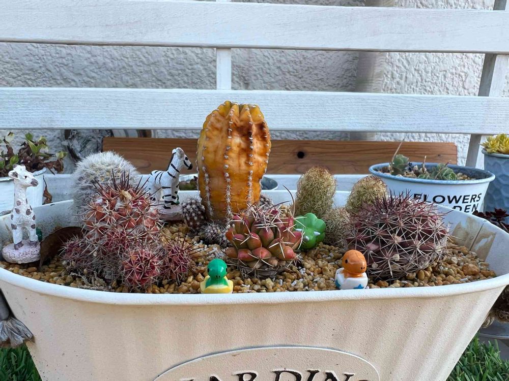 後ろ真ん中、この中ではノッポのサボテン🌵