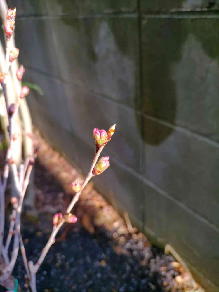 家の階段から見える坪庭の啓翁桜にもそろそろ春の兆しがみえてきました。