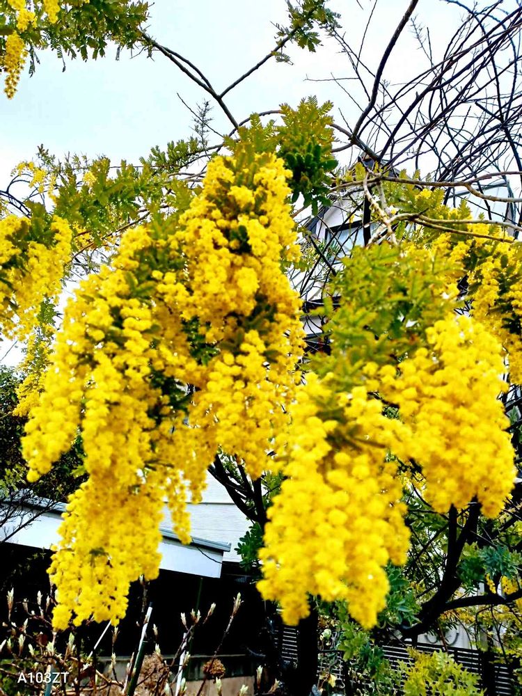 出勤途中に、通り道のお宅のお庭に、綺麗なミモザの花が咲いていました。