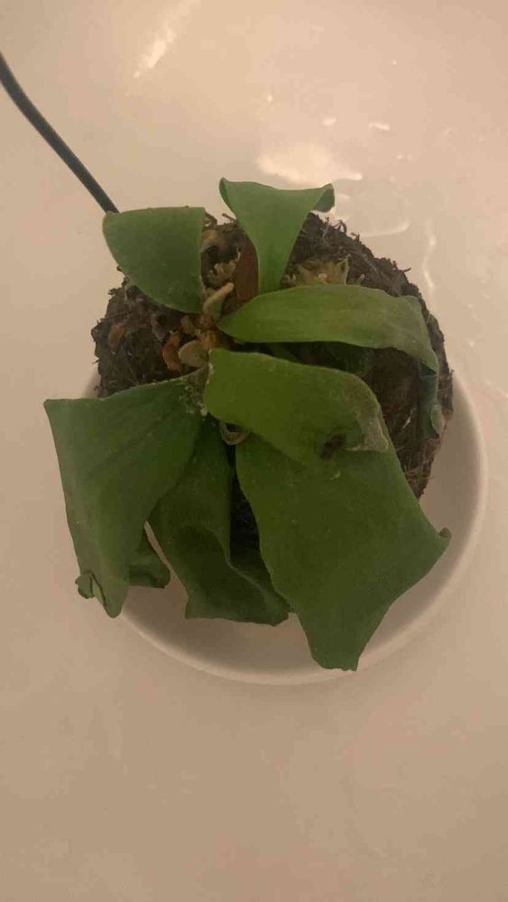 ビカクシダの苔丸の葉がへたってしまいました。キッチンで育てていて、水やりは苔が乾いたらやっていました。
