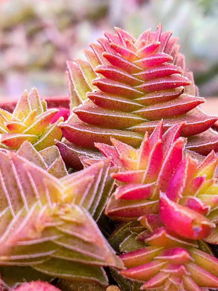 幾何学的に積み上がった葉っぱちゃんが魅力の クラッスラ・茜の塔さん&錦さんの混合😻❤️💚💛