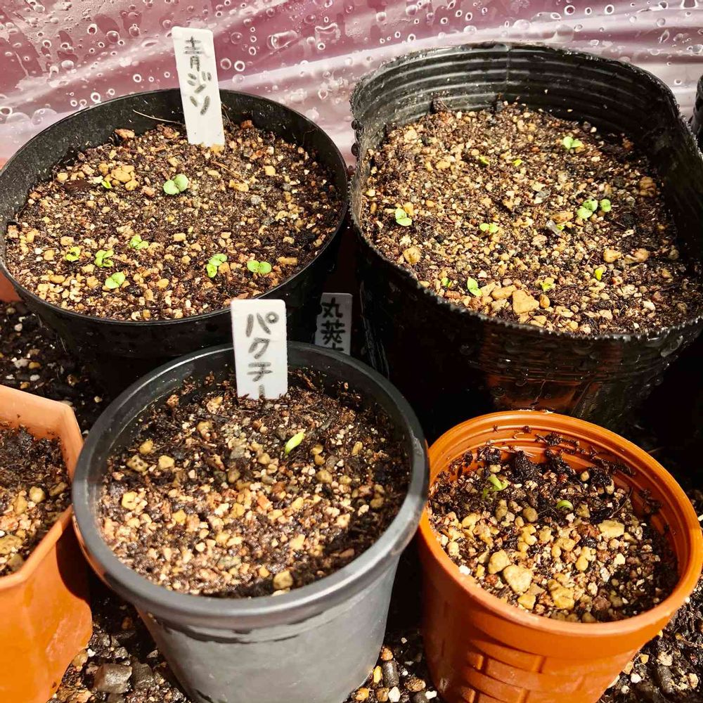 パクチーと青紫蘇の種をまいてから約2週間⏳