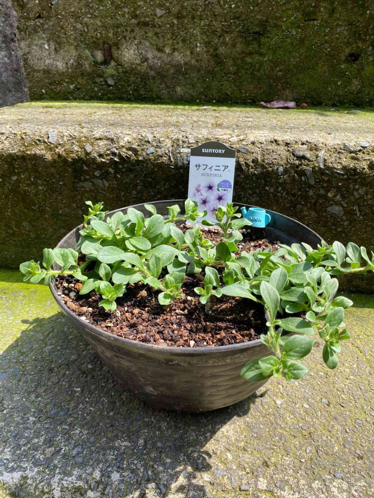 サントリーフラワーズの花苗は生育旺盛だからこの鉢に1苗でも良かったんだけど、我が家の環境が悪いので2苗植えました🌱
