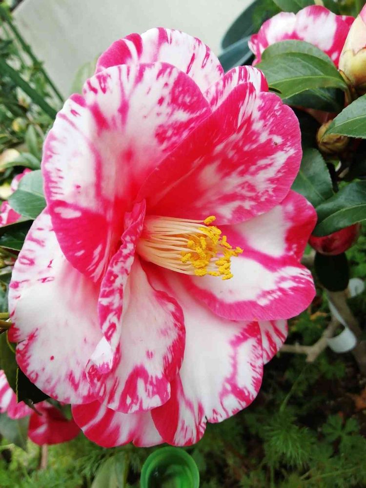 斑入り椿は遅咲きだね うちも咲き出しましたよ♡♡︎ʾʾ