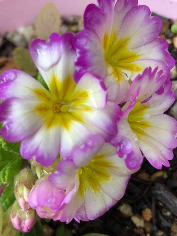 雨上がりの朝、プリムラの花が