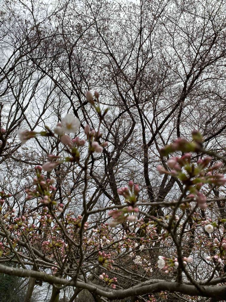 桜はまだ🌸ひと枝に一二輪咲いているだけです。今週末にはきっと咲き揃うかしら⁉︎