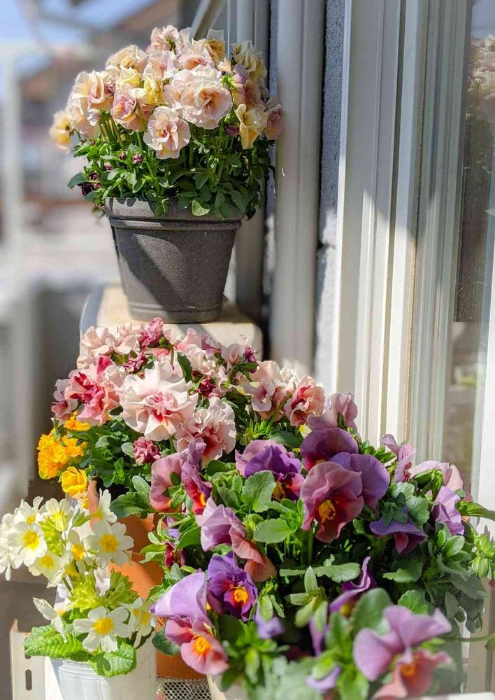 2階はよく☀陽があたるので、パンジーたちがよく咲いています❣️