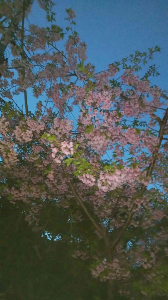 通勤帰り、辺りが暗くなり「陽光桜」の夜桜を楽しみました。🏙️🌸😊😄✌️