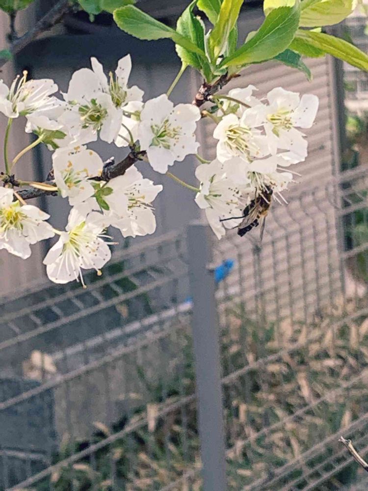 実がまだ一つもできてないから、今年はできると良いなぁと人工受粉しようと思ってたけど、蜂さん🐝来てて、頑張ってほしい☺️