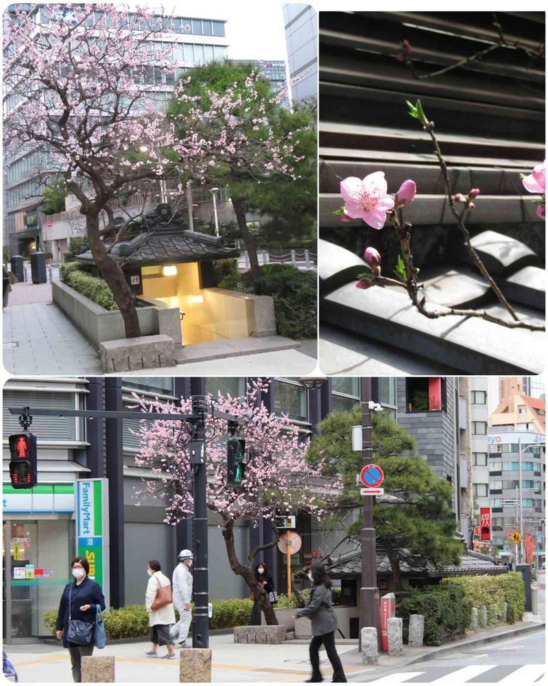 松と梅の下の瓦屋根は港区公衆トイレです。
