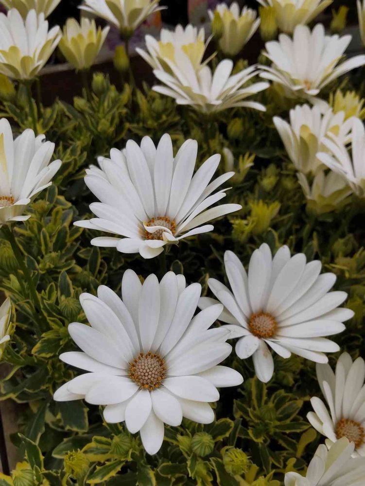 オステオスペルマム ホワイト バリエガータは 蕾の時は黄色がかった色合いで 開くと 白くなるのが特徴です。