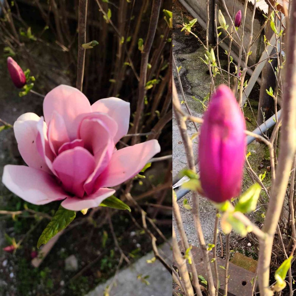 我が家の仕事場に木蓮の花が咲き始めました💜 綺麗です😆✨🎵🎶 もう1つ赤色の木蓮があるけど 旦那が✂️バッサリ切ったので 今の所蕾が無い😰残念です