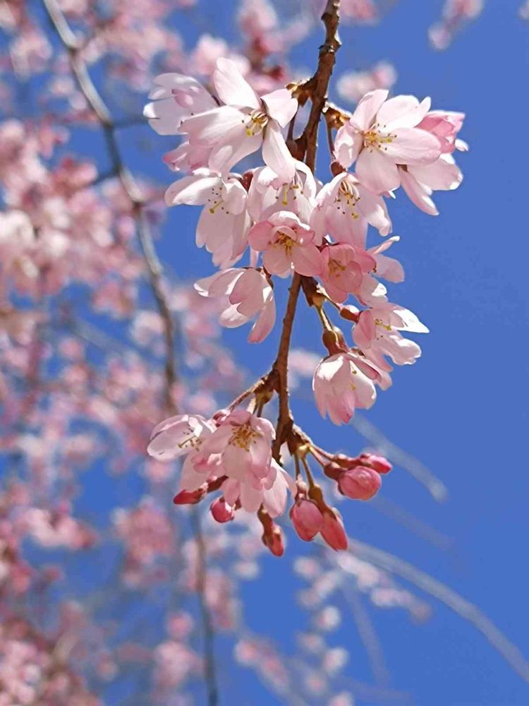 しだれ桜、青空に映えてめちゃ綺麗‼