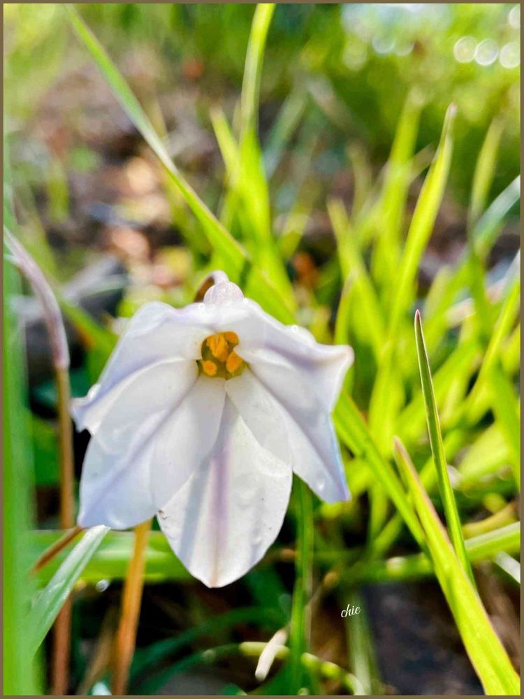 葉っぱをちぎると名前のとおりニラの匂いがする。花が美しく、葉が韮(にら)に似ていることから「花韮」。こちらもスプリングエフェメラル「春のはかない命」「春の妖精」と訳されてます。雨あがり、春の優しい輝きに包まれてましたのでパチリ✨花言葉は「愛しい人」🐈🤍♪