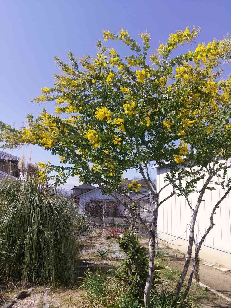 家の前のガレージの更に反対側で 普段は家から全く見えない場所なんで、、今年は 咲いたミモザが ガレージの屋根よりチラチラ見えて ん??咲いてるんだ‼️って 発見でして、、😊