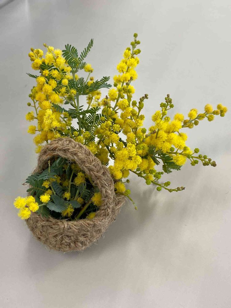 かわいいね~🧺かご入りミモザ〜籠も手作りなんて、幸せ🍀ミモザちゃんね🎀