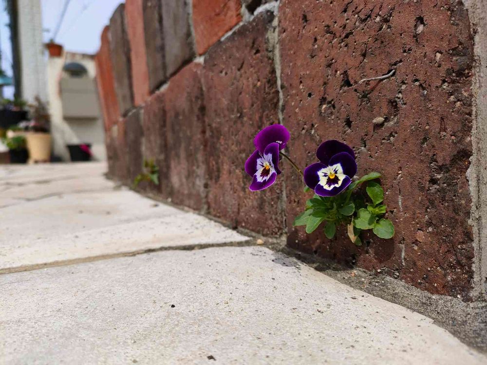 花壇のレンガの穴からビオラっぽい葉っぱが出てるなぁ〜と抜かずに様子をみていたら、こんなに可愛く咲いてくれました❤️
