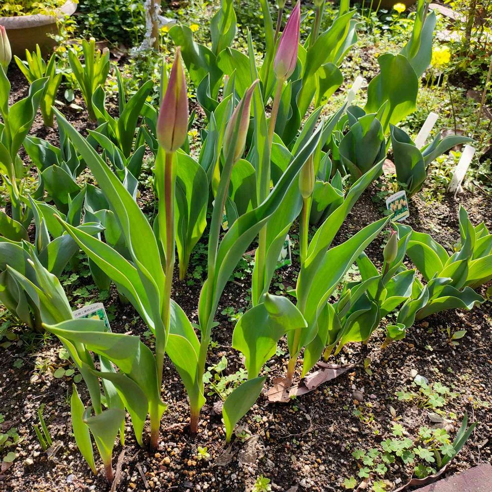 この辺ももうすぐ咲きそうだけど、明日の悪天候で折れないか心配😢