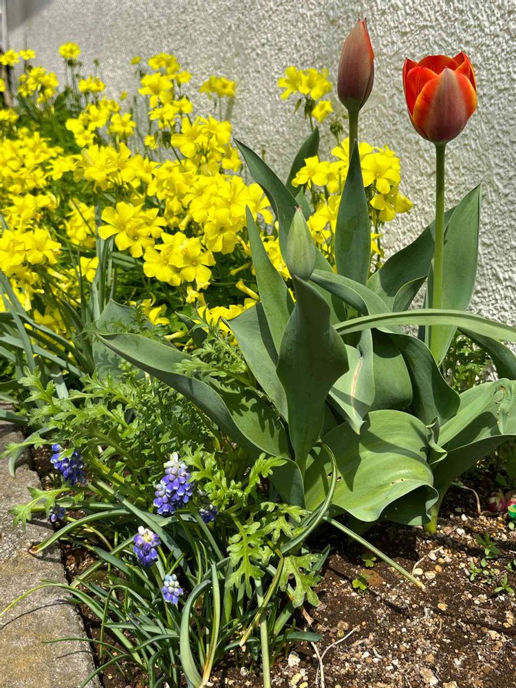 今期1番に咲いたチューリップ⸜🌷︎⸝は植えた覚えが無いのに咲く花です🤭