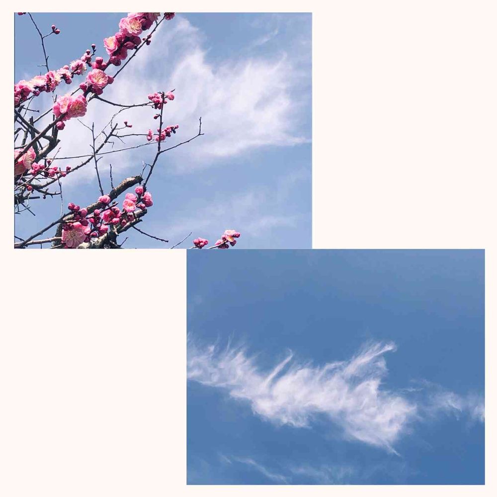グリーンスムージーさんのピンクのお花,紅梅の花,空と雲の投稿画像