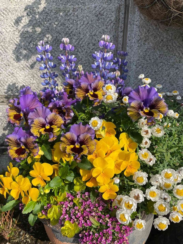 名もなき百円のパンジーが、すごい存在感✨そして、大好きなルピナスピクシー、今年も植えました😍