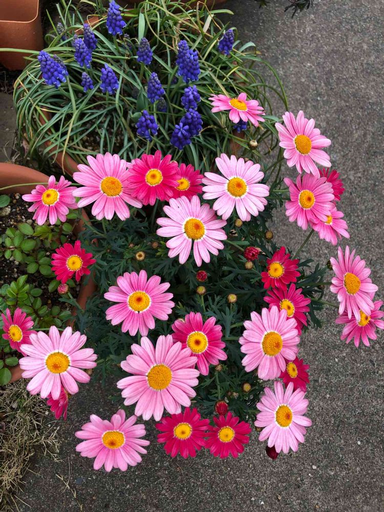 私も今年は、PWのスイートホイップをお連れしました( ˊᵕˋ*)でも、もう少し小さい苗なので、こんなに咲いてません。色変わりが可愛いマーガレットですよね(∩´∀`∩)💕