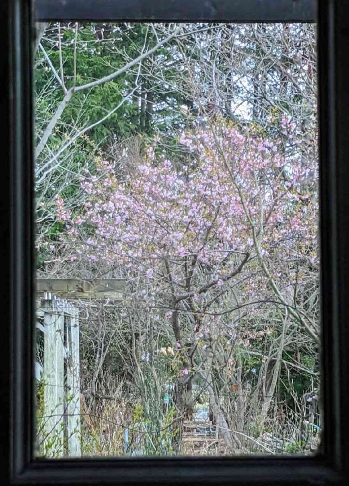 この扉を通した庭の景色も少し前までは冬と全然変わらなかったのですが河津桜が咲き揃って来たら一気に春の明るい景色になりましたよ…🖼🌸