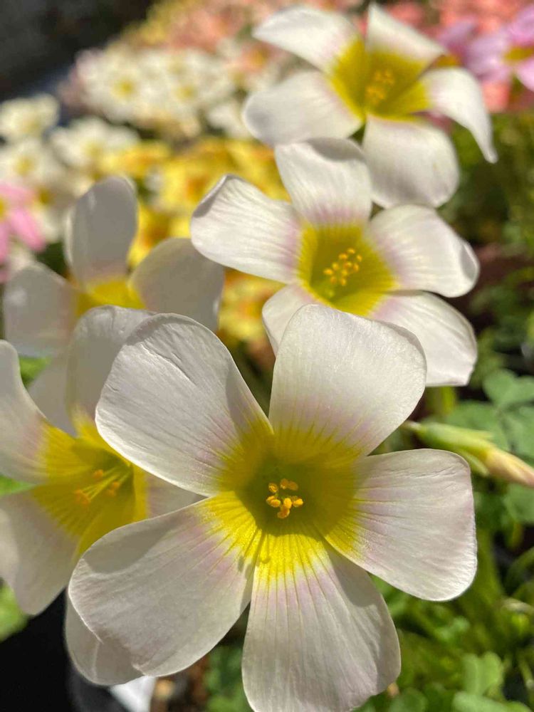 オキザリスを中心に、小さな庭で花を楽しんでいます。